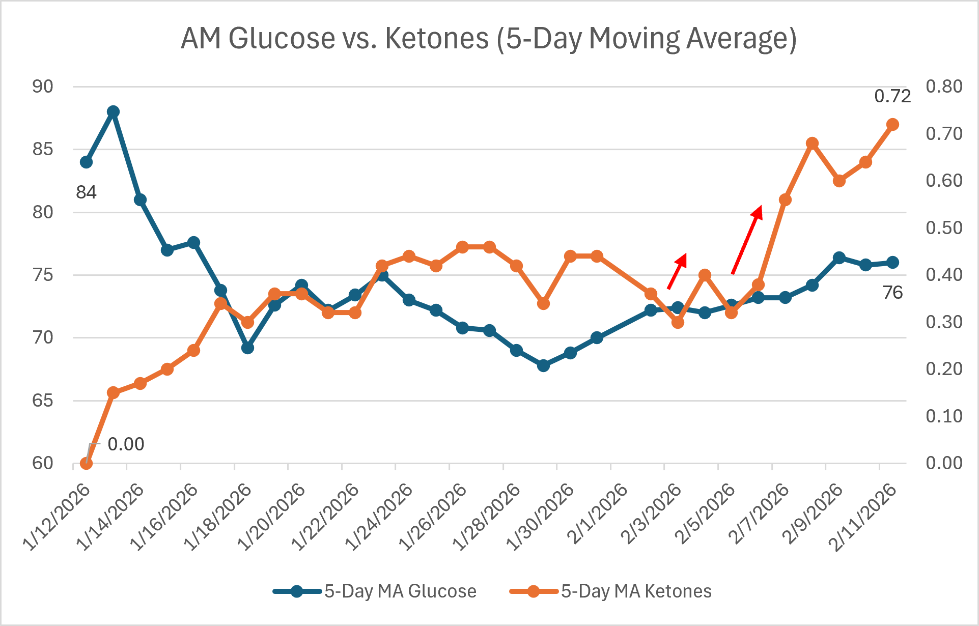 Metabolic Markers (Glucose & Ketones, Fasted AM, 5-Day MA)