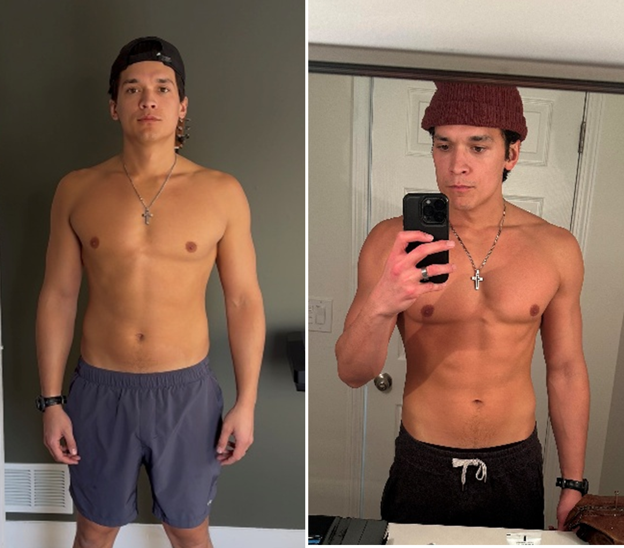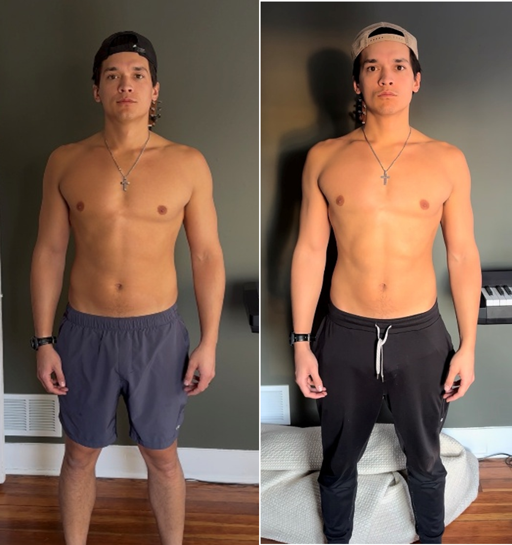 The third image is around two weeks post-experiment. Much more filled in lean physique after reintroducing light dinner, Zone 2 cardio, and strength training. I was happy with how recoverable muscle tone turned out to be.