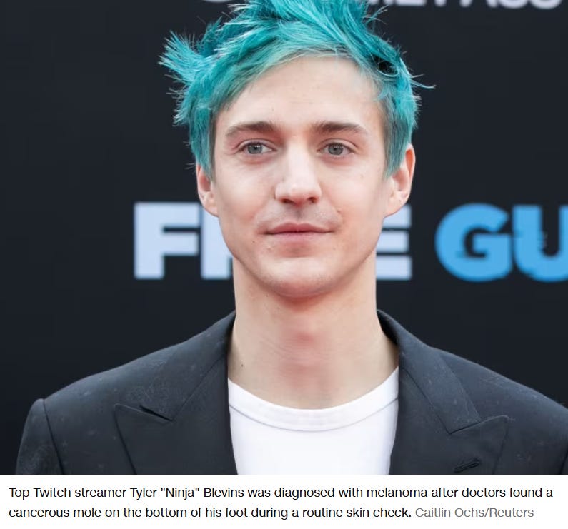 And don’t forget your favorite Twitch streamer Ninja, who spends virtually all day indoors, got skin cancer…on the bottom of his foot.